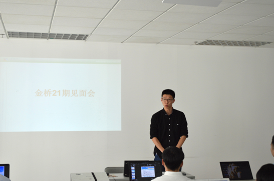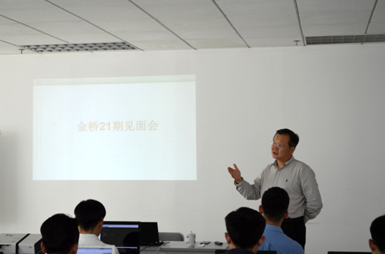 另外,金桥工程第六期毕业学员孙凯凯作为特邀嘉宾,给新学员传授了宝贵的学习经验和工作感受,为学弟学妹们加油打气。孙凯凯强调了技术的积累是快速的但同时又是无止境的。我们的学习都是由点向外扩散变成圆。他希望同学们在三个月的学习中能戒骄戒躁,潜心积累知识和技术。