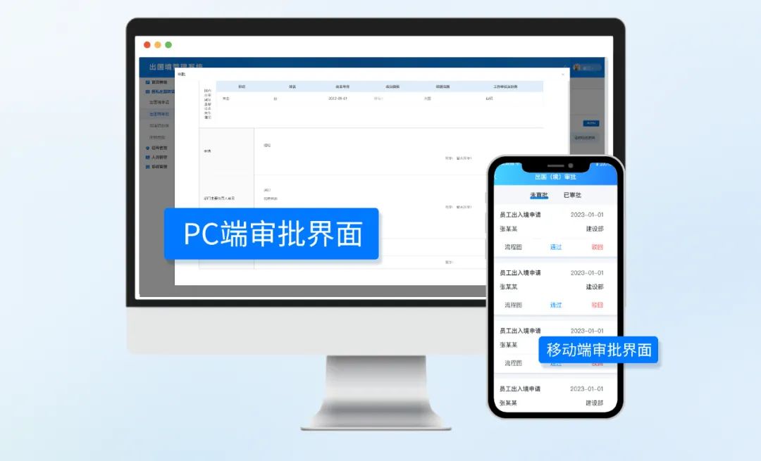 系统支持移动端和PC端两种方式,办公不受时间、地点的限制,领导可随时随地审批。