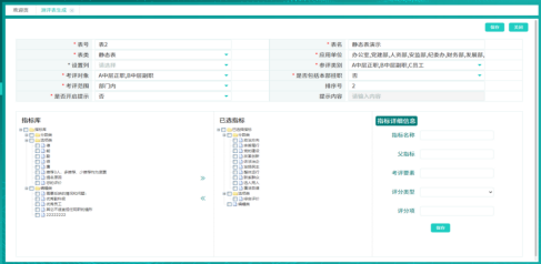 根据测评需求灵活定义测评指标、评分项、参评人及考评关系,一键生成测评表。