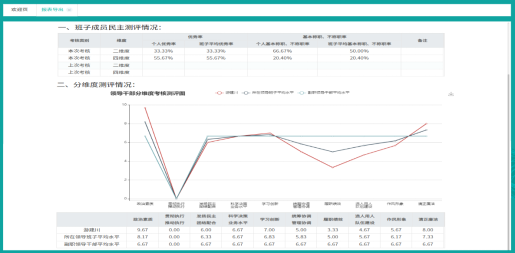 配置参评人权重,根据权重、考评关系计算打分结果,生成领导班子、班子成员的测评报告。多维度、立体化的展现测评主体、测评指标的得分和排名。