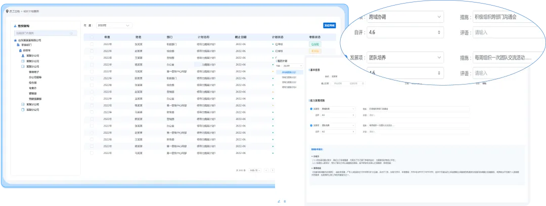 2.培养跟踪。针对员工的个人发展执行情况,可以发起考核评估,通过员工自评、上级评价等方式,实现对员工成长的跟踪反馈、全过程闭环管理。