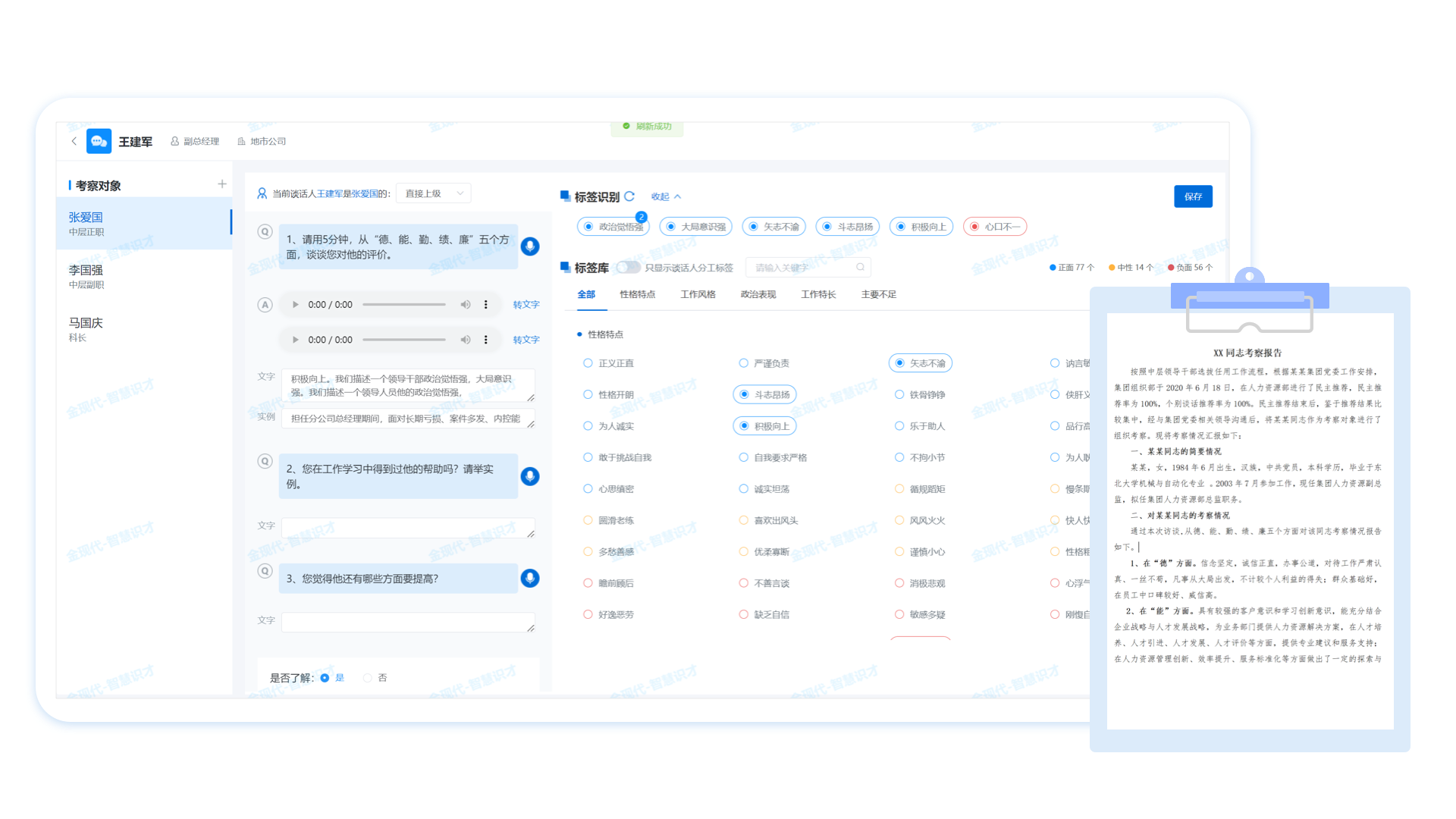 4 谈话考察内容自动生成报告 提高干部考评精准性