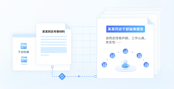 如今,AI可以从干部任免表、考察报告、现实表现、测评报告、综合考核报告等各类材料中,智能提取干部素质、能力、业绩、特点、不足等多类标签,并通过语义分析和智能扩写,生成干部画像报告。