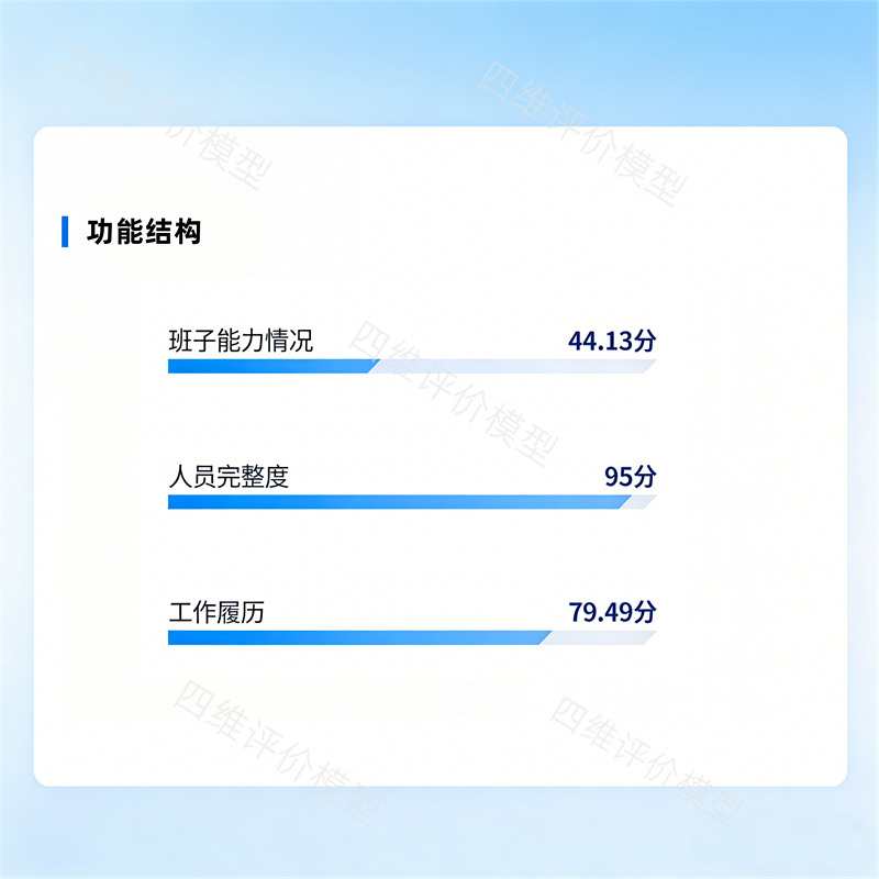 功能结构维度聚焦班子履职核心能力,全方位评估成员任职经历、专业素养、履职表现、人员完整度、岗位适配度等关键维度。