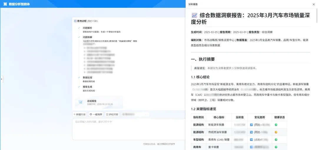 企业过去建的数据仓库、指标体系、报表平台没有白费,这些恰恰是Agent稳定运行的可信数据底座。技术在升级,底座价值不仅没丢,反而被放大一个量级。从“人围着数据转”到“数据追着业务跑”,这是数据分析智能体带来的根本变化。