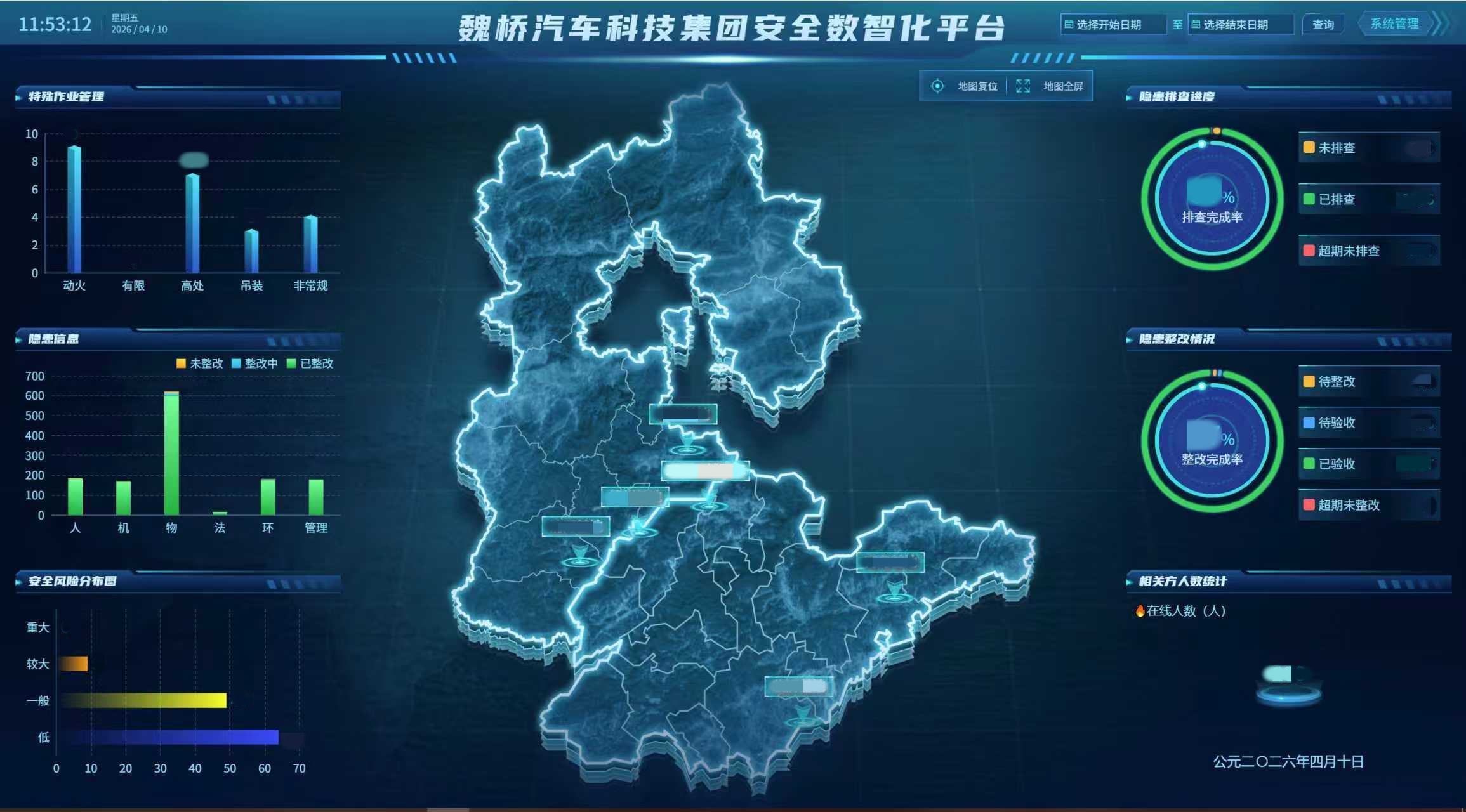 在双方首次合作中,魏桥汽车安全数智化平台一期已顺利上线并稳定运行。平台覆盖风险分级管理、隐患排查治理、特殊作业管理、安全教育培训等核心模块,通过 PC端与移动端深度协同,实现对各生产基地的实时监管,推动关键业务全流程线上化,大幅提升了企业安全生产管理的信息化水平及本质安全能力。