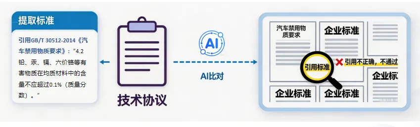技术协议更新智能审核:适配车企企标最快3个月一次的更新节奏,自动识别旧版本协议误用问题,大幅降低人工校对工作量。